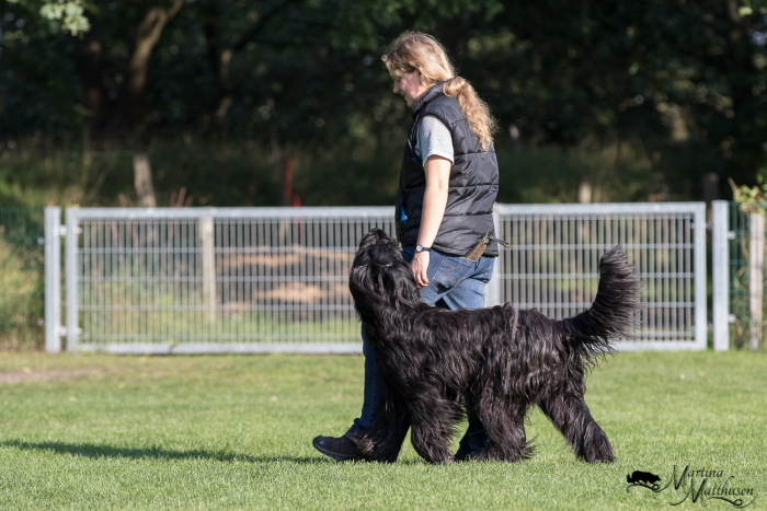 Carlsson hat den Tag genutzt, um beim Rally Obedience das erste Mal in der Klasse 1 zu starten. Er war offensichtlich in Geburtstagslaune und hat sich mit 97 Punkten auf Anhieb ein schönes V und den ersten Platz erlaufen. Für Elli und mich war es ein sehr herausfordernder Parcours und wir hatten phasenweise etwas Chaos (immer diese Futterverleitungen). Sie hat sich aber tapfer mit mir durchgekämpft und viele Sachen richtig gut gemacht, so dass ich es eigentlich ganz zufrieden war. Geblieben sind uns 72 Pünktchen von 100…
