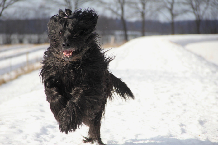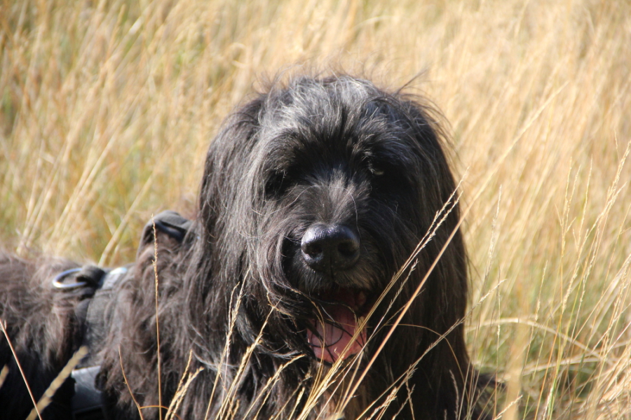 Die letzten drei Jahre verbrachte die sportlich aktive Riesin unter den Schapendoes mit der quirligen Dobby an ihrer Seite, was ihr offensichtlich sehr gut getan und noch mal viel zusätzliche Lebensfreude beschert hat. Mit ihrer kleinen Kumpeline ist sie eng zusammengewachsen und diese vermisst sie jetzt entsprechend sehr.