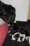 Die vierte Woche ging mit einem wahren Besucheransturm einher. Endlich durften die Zwerge die ersten Besucher empfangen, sehr zur Freude sowohl der Welpen, als auch der Zweibeiner.